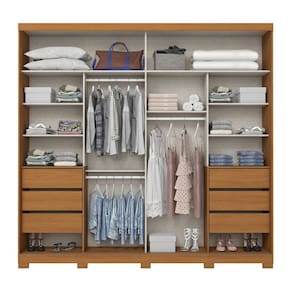O Roupeiro Cayman é a escolha perfeita para otimizar e organizar o seu ambiente. Fabricado 100% em MDF, ele conta com 2 portas deslizantes dividias com acabamento soft que garantem praticidade e sofisticação, 6 gavetas com corrediças telescópicas, cabideiro e calceiro em alumínio, puxadores com acabamento bronze, pés em ABS, frentes e tampos das gavetas na cor da caixa e um amplo espaço interno para organizar suas roupas com eficiência. Acabamento da Prateleira: Pintura Texturizada UV Escala de Brilho da Prateleira: Fosco Possui Cabideiros: Sim Acabamento da Gaveta: Pintura Texturizada UV Escala de Brilho da Gaveta: Fosco Possui Organizador de Gaveta: Não Acabamento da Porta: Pintura Texturizada UV Escala de Brilho da Porta: Fosco Material do Puxador da Porta: Alumínio Altura dos Pés: 5 cm Altura Máxima dos Pés: 5.0000 Ambiente Principal: Quarto codigo_ean: 7900288334350 Complexidade da Montagem: Alta: deve ser montado por um montador especializado Cor: Cinamomo/Off White Cor da Porta: Off White Cor do Produto: Cinamomo/Off White Cor Interna: Trama Escala de Brilho: Brilhante Espessura da Estrutura (mm): 15 mm Espessura das Portas (mm): 12 mm Espessura das Prateleiras (mm): 15 mm Espessura do Fundo (mm): 3 mm Espessura do Fundo das Gavetas (mm): 3 mm Gaveta com Chave: Não Guarda-Roupa Suporta Até (kg): 107 kg Informações Complementares: 06 gavetas com corrediças telescópicas • Portas divididas com acabamento soft • Cabideiros e calceiro em alumínio • Puxadores com acabamento bronze • Pés em ABS • Frentes e tampos das gavetas na cor da caixa • Guarda-roupa 100% MDF Itens Inclusos: 1 Guarda-Roupa, Kit Ferragem e Manual de Montagem Linha ou Coleção: Cayman Manual de Montagem e Instalação: https://product-hub-prd.madeiramadeira.com.br/661635447/documents/6f0957c7-4b34-4d47-a4b5-f7398e126a373396849679217713485431579.pdf Marca: Henn Material da Gaveta: MDF Material da Porta: MDF Material da Prateleira: MDF Material dos Pés: ABS Material Principal: MDF modular: Não Necessita Montagem: Sim Nicho com Cabideiro: Sim Origem do Produto: Nacional Peso: 187 kg Peso Máximo por Gaveta: 3 kg Peso Máximo por Prateleira: 8 kg Porta Janelada: Não Possui Calceiros: 01 Possui Capelinha: Não Possui Espaço para Vestidos Longos: Sim Possui Espelho: Não Possui Espelho Interno: Não Possui Ganchos: Não Possui iluminação: Não Possui Nichos: Não Possui Painel de TV: Não Possui Penteadeira: Não Possui Pés: 10 Possui Portas: Sim Possui Prateleiras: Sim Possui Sapateira: Sim Produto Montado: Sim Quantidade de Cabideiros: 02 Cabideiros Quantidade de Gavetas: 06 Gavetas Quantidade de Prateleiras: 07 Prateleiras Recomendações de Uso, Manutenção e Limpeza: Para limpeza de seu móvel, use uma flanela limpa e seca. Não utilize produtos químicos que possam danificar o produto. Sapatas Niveladoras: Não Sistema de Montagem: Parafusos e Cavilhas. Suporta Até (kg): 107 kg Tipo de Corrediça da Gaveta: Metálica Telescópica Tipo de Dobradiça/Corrediça da Porta: Alumínio Tipo de Gaveta: Interna Tipo de Guarda-Roupa: Casal Tipo de Puxador da Gaveta: Não Possui Tipo de Puxador da Porta: Externo