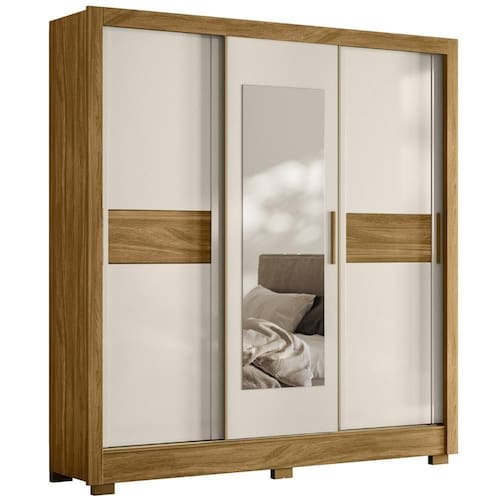 MDPGuarda Roupa Casal 202cm Com Espelho Arden Freijó/Off Z17 - Mpozenato
