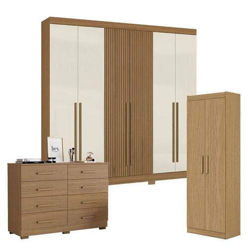 Guarda Roupa Casal 2030230 Atacama Areia com Multiuso 2000191 e Cômoda 2014148 Atacama - Aramóveis