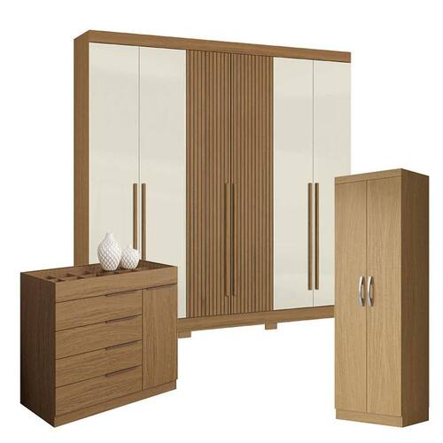 Guarda Roupa Casal 2030230 Atacama Areia com Multiuso New 2000192 e Cômoda Sevilha Atacama - Aramóveis