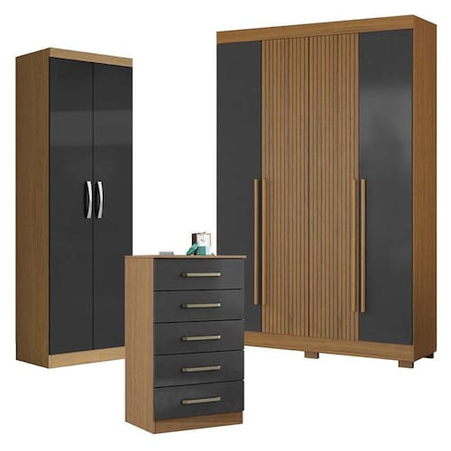 Guarda Roupa Casal 2030240 com Armário Multiuso 2000192 e Cômoda 2014140 Atacama Grafite - Aramóveis