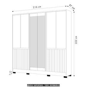 A estrutura é firmemente apoiada em seis pés de plástico PVC de 5cm, que garantem estabilidade e facilitam a limpeza do ambiente. O Guarda Roupa Com Espelho é um móvel completo, que une praticidade, beleza e resistência para tornar seu quarto ainda mais acolhedor.