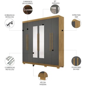 O Guarda Roupa Bolty é ideal para casais que procuram espaço e funcionalidade em um único móvel. Com seis portas e duas gavetas, sendo duas Portas Com Espelhos oferece ótimo aproveitamento interno, permitindo organizar roupas, acessórios e muito mais. Seu interior bem planejado conta com cabideiros de alumínio, várias prateleiras e um maleiro espaçoso, garantindo praticidade e organização no dia a dia.