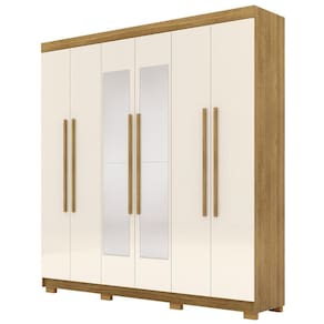 Guarda Roupa Casal 218cm Com Espelho Bolty Nature/Champanhe V02 - Mpozenato