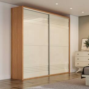quarto de casal, pois as portas com abertura deslizante não atrapalham a circulação do ambiente. Além disso, possui um excelente compartimento interno com várias prateleiras, 2 gavetas e cabideiros, itens perfeitos para manter tudo no lugar e facilitar a visualização das peças.