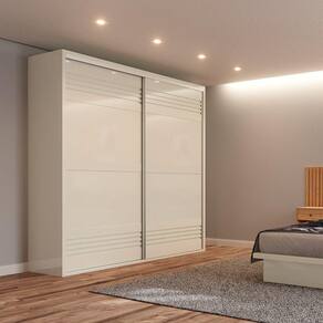 quarto de casal, pois as portas com abertura deslizante não atrapalham a circulação do ambiente. Além disso, possui um excelente compartimento interno com várias prateleiras, 2 gavetas e cabideiros, itens perfeitos para manter tudo no lugar e facilitar a visualização das peças.