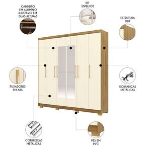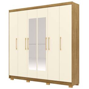 Guarda Roupa Casal 223cm Com Espelho Pako Nature/Champanhe V02 - Mpozenato