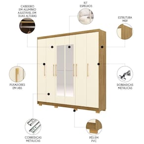 Guarda Roupa Casal 223cm Com Espelho Pernambuco Nature/Champanhe - Vila Rica