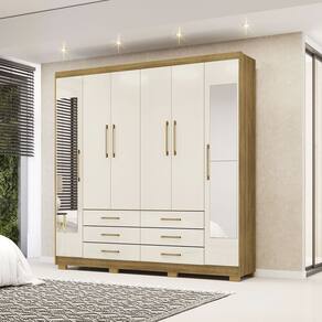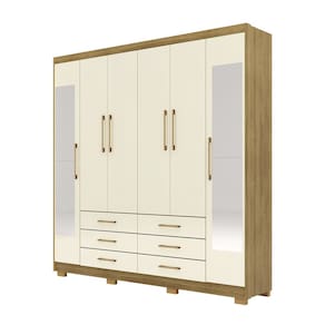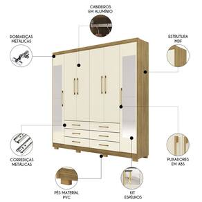 Guarda Roupa Casal 223cm Com Espelho Rick Nature/Champanhe V02 - Mpozenato