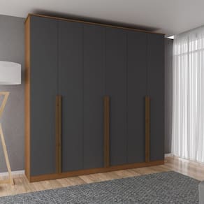 O Guarda-Roupa Haia 6 portas de bater oferece elegância e praticidade, além de combinar com qualquer ambiente. Este produto apresenta um amplo espaço interno, que conta com 3 cabideiros, 7 prateleiras e 3 gavetas que possuem corrediça metálica. Os cabideiros são de alumínio e ao puxador é em madeira. Acabamento da Prateleira: Pintura UV Escala de Brilho da Prateleira: Semi-Brilho Possui Cabideiros: Sim Acabamento da Gaveta: Pintura UV Escala de Brilho da Gaveta: Semi-Brilho Possui Organizador de Gaveta: Não Acabamento da Porta: Pintura UV Escala de Brilho da Porta: Semi-Brilho Material do Puxador da Porta: Madeira Maciça Acabamento dos Pés: Pintura Altura dos Pés: 14.5 Altura Máxima dos Pés: 14.5000 Ambiente Principal: Quarto codigo_ean: 7909373488565 Complexidade da Montagem: Média: pode ser montado por mais de uma pessoa e/ou necessite de maior conhecimento para montagem Cor: Carvalho Vermontt/Grafite Cor do Produto: Carvalho Vermontt/Grafite Cor Interna: Linho Escala de Brilho: Semi-Brilho Gaveta com Chave: Não Guarda-Roupa Suporta Até (kg): 40 kg Itens Inclusos: 1 Guarda-Roupa, Kit Ferragens e Manual de Montagem Linha ou Coleção: Haia Manual de Montagem e Instalação: https://product-hub-prd.madeiramadeira.com.br/884449/documents/e4da7d94-f610-42d7-b8c6-5c2fdcd5f4087553ph1803manualdemontagem.pdf Material da Gaveta: MDF Material da Porta: MDF Material da Prateleira: MDF Material dos Pés: MDF Material Principal: MDF modular: Não Necessita Montagem: Sim Origem do Produto: Nacional Peso: 186 kg Peso Máximo por Gaveta: 5 kg Peso Máximo por Prateleira: 5 kg Possui Calceiros: Não Possui Espaço para Vestidos Longos: Sim Possui Espelho: Não Possui Espelho Interno: Não Possui Ganchos: Não Possui iluminação: Não Possui Painel de TV: Não Possui Pés: Rodapé Possui Portas: Sim Possui Prateleiras: Sim Possui Sapateira: Não Produto Montado: Sim Quantidade de Gavetas: 03 Gavetas Quantidade de Prateleiras: 07 Prateleiras Recomendações de Uso, Manutenção e Limpeza: Recomenda-se a utilização de pano seco. Sapatas Niveladoras: Sim Sistema de Montagem: Parafuso e Minifix Suporta Até (kg): 40 kg Tipo de Corrediça da Gaveta: Metálica Simples Tipo de Dobradiça/Corrediça da Porta: Metálica Tipo de Gaveta: Interna Tipo de Guarda-Roupa: Casal Tipo de Puxador da Gaveta: Não Possui Tipo de Puxador da Porta: Externo