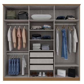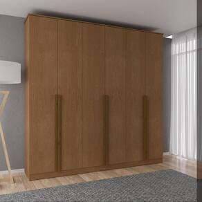 O Guarda-Roupa Haia 6 portas de bater oferece elegância e praticidade, além de combinar com qualquer ambiente. Este produto apresenta um amplo espaço interno, que conta com 3 cabideiros, 7 prateleiras e 3 gavetas que possuem corrediça metálica. Os cabideiros são de alumínio e ao puxador é em madeira. Acabamento da Prateleira: Pintura UV Escala de Brilho da Prateleira: Semi-Brilho Possui Cabideiros: Sim Acabamento da Gaveta: Pintura UV Escala de Brilho da Gaveta: Semi-Brilho Possui Organizador de Gaveta: Não Acabamento da Porta: Pintura UV Escala de Brilho da Porta: Semi-Brilho Material do Puxador da Porta: Madeira Maciça Acabamento dos Pés: Pintura Altura dos Pés: 14.5 Altura Máxima dos Pés: 14.5000 Ambiente Principal: Quarto codigo_ean: 7909373488558 Complexidade da Montagem: Média: pode ser montado por mais de uma pessoa e/ou necessite de maior conhecimento para montagem Cor: Carvalho Vermontt Cor do Produto: Carvalho Vermontt Cor Interna: Linho Escala de Brilho: Semi-Brilho Gaveta com Chave: Não Guarda-Roupa Suporta Até (kg): 40 kg Itens Inclusos: 1 Guarda-Roupa, Kit Ferragens e Manual de Montagem Linha ou Coleção: Haia Manual de Montagem e Instalação: https://product-hub-prd.madeiramadeira.com.br/884441/documents/2556b62e-e790-4ac2-bda2-1a3b1b26e0c07556ph1803manualdemontagem.pdf Material da Gaveta: MDF Material da Porta: MDF Material da Prateleira: MDF Material dos Pés: MDF Material Principal: MDF modular: Não Necessita Montagem: Sim Origem do Produto: Nacional Peso: 186 kg Peso Máximo por Gaveta: 5 kg Peso Máximo por Prateleira: 5 kg Possui Calceiros: Não Possui Espaço para Vestidos Longos: Sim Possui Espelho: Não Possui Espelho Interno: Não Possui Ganchos: Não Possui iluminação: Não Possui Painel de TV: Não Possui Pés: Rodapé Possui Portas: Sim Possui Prateleiras: Sim Possui Sapateira: Não Produto Montado: Sim Quantidade de Gavetas: 03 Gavetas Quantidade de Prateleiras: 07 Prateleiras Recomendações de Uso, Manutenção e Limpeza: Recomenda-se a utilização de pano seco. Sapatas Niveladoras: Sim Sistema de Montagem: Parafuso e Minifix Suporta Até (kg): 40 kg Tipo de Corrediça da Gaveta: Metálica Simples Tipo de Dobradiça/Corrediça da Porta: Metálica Tipo de Gaveta: Interna Tipo de Guarda-Roupa: Casal Tipo de Puxador da Gaveta: Não Possui Tipo de Puxador da Porta: Externo