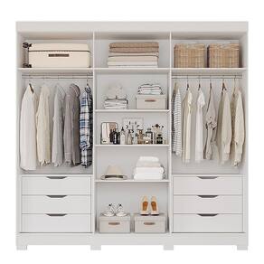 Transforme seu espaço com o Guarda-Roupas Boston, feito com estrutura 100% MDF para garantir maior resistência. Com acabamento em pintura UV para um toque de elegância, suas gavetas deslizam suavemente graças às corrediças telescópicas. Os cabideiros em alumínio e as prateleiras internas proporcionam uma organização impecável para suas roupas e acessórios.