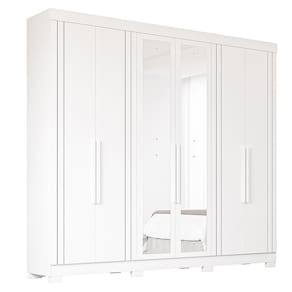 Guarda-roupa Casal 234,60cm 6 Portas com Espelho e 6 Gavetas 100% Mdf Boston Espresso Móveis Branco Brilho