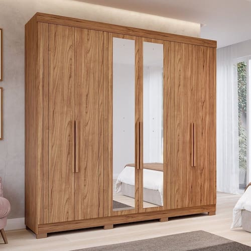 Transforme seu espaço com o Guarda-Roupas Boston, feito com estrutura 100% MDF para garantir maior resistência. Com acabamento em pintura UV para um toque de elegância, suas gavetas deslizam suavemente graças às corrediças telescópicas. Os cabideiros em alumínio e as prateleiras internas proporcionam uma organização impecável para suas roupas e acessórios. Acabamento da Prateleira: Pintura UV Escala de Brilho da Prateleira: Fosco Possui Cabideiros: Sim Acabamento da Gaveta: Pintura UV Escala de Brilho da Gaveta: Fosco Material do Puxador da Gaveta: MDF Possui Organizador de Gaveta: Não Acabamento da Porta: Pintura UV Escala de Brilho da Porta: Brilhante Material do Puxador da Porta: MDF Altura do Espelho: 98 cm Altura dos Pés: 5 cm Ambiente Principal: Quarto codigo_ean: 7909903659533 Complexidade da Montagem: Alta: deve ser montado por um montador especializado Cor: Cinamomo Cor do Produto: Cinamomo Cor Interna: Cinamomo Escala de Brilho: Fosco Espessura do Espelho: 3 mm Fita Integrada: Sim Formato do Espelho: Retangular Gaveta com Chave: Não Guarda-Roupa Suporta Até (kg): 50 kg Itens Inclusos: 1 Guarda Roupa+ Kit Espelhos + Kit Montagem + Manual Largura do Espelho: 27,8 cm Linha ou Coleção: Boston Manual de Montagem e Instalação: https://product-hub-prd.madeiramadeira.com.br/905428/documents/314dc9c7-4059-43cd-ae9c-52ebd62de8881913347manual40010117.pdf Material da Gaveta: MDF Material da Porta: MDF Material da Prateleira: MDF Material dos Pés: Plástico Material Principal: MDF modular: Não Montagem Flex: Não Necessita Montagem: Sim Origem do Produto: Nacional Peso: 183,28 kg Peso Máximo por Gaveta: 15 kg Peso Máximo por Prateleira: 15 kg Possui Calceiros: Não Possui Espelho: Sim Possui Pés: 08 Possui Portas: Sim Possui Prateleiras: Sim Produto Montado: Sim Quantidade de Espelho: 02 Espelhos com Tamanhos Iguais Quantidade de Gavetas: 06 Gavetas Quantidade de Prateleiras: 06 Prateleiras Recomendações de Uso, Manutenção e Limpeza: Para limpeza utilizar somente pano limpo e macio, ligeiramente umedecido em água (apenas o bastante para remover a poeira), seguido de um pano seco. Sistema de Montagem: Parafusos autoatarraxantes, conjuntos minifix, cavilhas de madeira, acessórios plásticos e metálicos Suporta Até (kg): 50 kg Tipo de Corrediça da Gaveta: Metálica Telescópica Tipo de Dobradiça/Corrediça da Porta: Metálica Tipo de Fixação do Espelho: Fita Dupla Face Tipo de Gaveta: Interna Tipo de Guarda-Roupa: Casal Tipo de Puxador da Gaveta: Embutido Tipo de Puxador da Porta: Externo