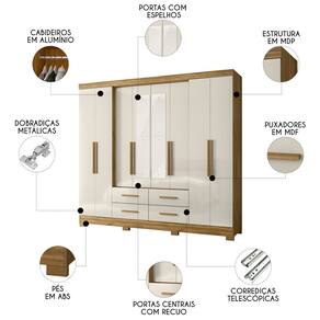 Guarda Roupa Casal 237cm Com Espelho Archi Freijó/Off White Z17 - Mpozenato