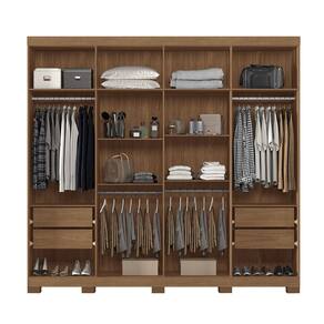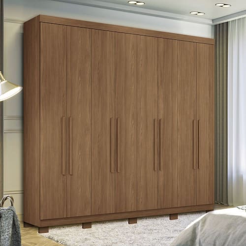 Características: Estrutura: MDP 12mm e 15mm Acabamento: Pintura UV e Verniz Quantidade de Portas: 8 de Bater Tipo de Dobradiças: Metálicas Simples Quantidade de Gavetas: 4 Tipo de Corrediças: Metálicas Telescópicas Quantidade de Prateleiras: 8 Tipo de Puxador: MDF revestido Quantidade e Tipo de Cabideiros: 4 em Alumínio Tipo de Pés: 10 Pés em PVC Suporte até: Gavetas suportam até 3kg cada e prateleiras até 8kg cada Sistema de Montagem: Cavilhas, Parafusos e Minifix Itens Inclusos: 1 Guarda Roupa, Kit Ferragens e Manual de Montagem Garantia: 3 meses Manutenção: Não limpar com álcool ou qualquer outro produto químico, utilize somente pano seco ou levemente umedecido.