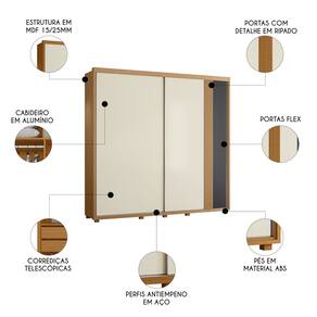 Com duas portas deslizantes de cor flex, o design inovador permite um deslizamento suave e sem esforço, proporcionando fácil acesso ao interior. As quatro gavetas, equipadas com corrediças telescópicas, oferecem maior durabilidade e facilidade de uso, permitindo o armazenamento de roupas e acessórios de forma eficiente. Os puxadores perfil em alumínio agregam um toque sofisticado, complementando o visual clean e contemporâneo do móvel. A estrutura do Guarda Roupa 2 Portas é reforçada por perfis antiempeno em aço, garantindo robustez e resistência, enquanto o aplique de MDF revestido oferece um acabamento de alta qualidade. As prateleiras internas proporcionam um amplo espaço de organização. Além disso, os dois cabideiros de alumínio oferecem um suporte ideal para pendurar suas roupas com praticidade. Com moldura de 25mm, o Guarda Roupa oferece estabilidade e resistência, tornando-se uma peça durável para o seu ambiente. Os pés inclusos não só asseguram maior durabilidade, como também facilitam a limpeza, mantendo o móvel elevado e dando um toque de leveza ao design.