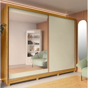 Guarda Roupa Casal com Espelho 2 Portas Apolo Naturale Off-White - Gelius