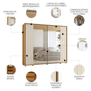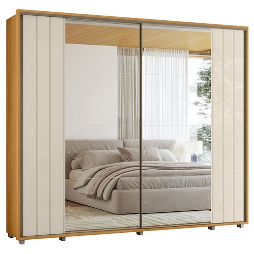 Guarda Roupa Casal 278cm 2 Portas 8 Espelhos Mya Off/Cinamomo Z10 - Mpozenato