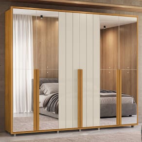 Guarda Roupa Casal 278cm 6 Portas 8 Espelhos Zac Off/Cinamomo Z10 - Mpozenato