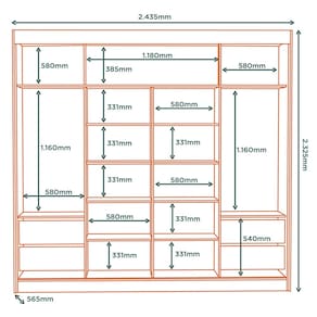 Materiais: Estrutura 100% MDF (chapa de 15mm), Corrediças Telescópicas, Puxadores em Aluminio, Cabideiro em Aluminio, Sistema de correr com guia regulavel, trilho inferior em Aluminio, Perfil anti-enpeno nas portas e trilho superior usinado.