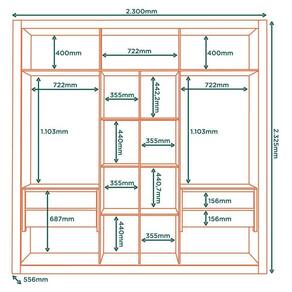Materiais: Estrutura 100% MDF (chapa de 12mm), Corrediças Telescópicas, Cabideiro em Alumínio, Trilho inferior em Alumínio, Trilho superior usinado e Puxadores de Plástico.