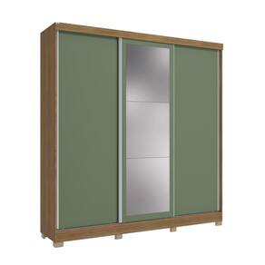 E para completar o charme do guarda-roupa, ele conta com corpo na cor nogueira, com pintura touch, que traz a textura dos veios da madeira, enquanto suas portas são reversíveis, possibilitando escolher entre as cores verde oliva, com pintura fosca, ou nogueira, com acabamento touch, garantindo muita beleza para seu espaço. E com espelho de corpo inteiro e pés em polipropileno, esse modelo será o destaque do seu espaço, proporcionando beleza e praticidade ao seu dia a dia.