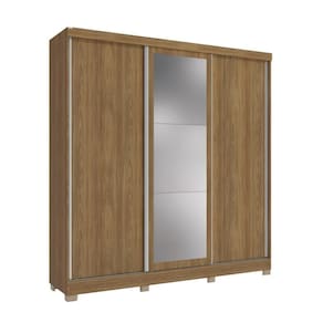 Acabamento: Pintura Touch / Pintura Touch / Fosco | Acabamento da Fita Borda: Papel | Cor: Nogueira | Corrediças: Metálicas | Garantia: 3 meses para defeito de fabricação | Gavetas: Internas | Matéria-prima: MDP / Polipropileno | Peso suportado por cabideiro: 10 Kg | Peso suportado por cada prateleira: 7 kg | Puxadores: Alumínio | Quantidade de calceiros: 2 | Quantidade de gavetas: 2 | Quantidade de portas: 3 | Quantidade de prateleiras: 9 | Sistema de montagem: Parafuso Philips / Parafuso Philips e Minifix | Tipo de porta: Correr