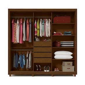 O Roupeiro Royale se destaca pela praticidade das portas de correr, contribuem para a otimização de espaço, contando com um amplo espaço interno, em que sua estrutura é formada por quatro gavetas, quatro prateleiras, além de amplo espaço para vestidos e calças. O roupeiro Royale conta também com porta com espelho inteiriço, trazendo mais sofisticação ao produto. Acabamento da Prateleira: Pintura Texturizada UV Escala de Brilho da Prateleira: Semi-Brilho Possui Cabideiros: Sim Acabamento da Gaveta: Pintura Texturizada UV Escala de Brilho da Gaveta: Semi-Brilho Possui Organizador de Gaveta: Não Acabamento da Porta: Pintura Texturizada UV Escala de Brilho da Porta: Semi-Brilho Material do Puxador da Porta: Alumínio Acabamento dos Pés: Pintura Altura do Espelho: 200,8 cm Altura dos Pés: 6.5 Altura Máxima dos Pés: 6.5000 Ambiente Principal: Quarto codigo_ean: 7909903616437 Complexidade da Montagem: Média: pode ser montado por mais de uma pessoa e/ou necessite de maior conhecimento para montagem Cor: Castanho/Castanho Ripado Cor do Produto: Castanho/Castanho Ripado Cor Flex: Não Cor Interna: Castanho Escala de Brilho: Semi-Fosco Espessura do Espelho: 3 mm Formato do Espelho: Retangular Gaveta com Chave: Não Informações Complementares: Puxador da porta de espelho = material MDF Itens Inclusos: 1 Guarda Roupa, Kit Ferragens e Manual de Montagem. Largura do Espelho: 71,9 cm Linha ou Coleção: Royale Manual de Especificação Técnica: https://product-hub-prd.madeiramadeira.com.br/898598/documents/b1ab7064-7787-4893-b0a1-b1e219683aff027e861926royale3prp1ptesp.pdf Manual de Montagem e Instalação: https://product-hub-prd.madeiramadeira.com.br/898598/documents/134c3d0a-912d-4e7b-83d6-4c46108719d7ec69861925royale3prp1ptesp.pdf Material da Gaveta: MDF Material da Porta: MDF/Vidro Material da Prateleira: MDF Material dos Pés: Madeira Maciça Material Principal: MDP modular: Não Montagem Flex: Não Necessita Montagem: Sim Origem do Produto: Nacional Peso: 155 kg Peso Máximo por Gaveta: 10 kg Peso Máximo por Prateleira: 10 kg Possui Calceiros: 01 Possui Espaço para Vestidos Longos: Não Possui Espelho: Sim Possui Espelho Interno: Não Possui iluminação: Não Possui Painel de TV: Não Possui Pés: 08 Possui Portas: Sim Possui Prateleiras: Sim Possui Sapateira: Não Produto Montado: Sim Quantidade de Espelho: 01 Quantidade de Gavetas: 04 Gavetas Recomendações de Uso, Manutenção e Limpeza: A limpeza do produto deve ser feita por meio do uso de um pano, umedecido com água, e um pano seco. É importante para fazer a limpeza do móvel nunca utilizar produtos químicos ou abrasivos. Para conservar o padrão de qualidade dos produtos Gelius, nunca arraste um móvel se este estiver cheio. Nunca puxe o móvel de frente para você, pois ele pode balançar e provocar acidentes. Sapatas Niveladoras: Não Sistema de Montagem: Convencional: parafusos, pregos, cavilhas, etc. Suporta Até (kg): 150 kg Tipo de Corrediça da Gaveta: Metálica Telescópica Tipo de Dobradiça/Corrediça da Porta: Metálica Tipo de Fixação do Espelho: Molduras Tipo de Gaveta: Interna Tipo de Guarda-Roupa: Casal Tipo de Madeira Maciça dos Pés: Pinus Tipo de Puxador da Gaveta: Não Possui Tipo de Puxador da Porta: Externo