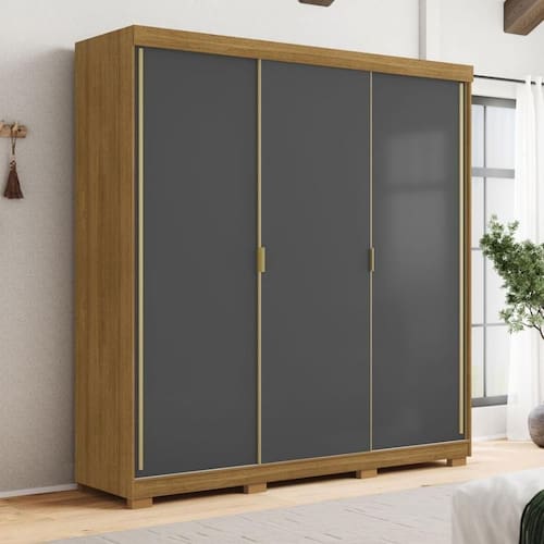 O Guarda Roupa Casal Porto da Vila Rica combina elegância e funcionalidade, perfeito para otimizar o espaço do seu quarto. Com três portas de correr e quatro gavetas amplas, proporciona excelente capacidade de armazenamento para roupas, acessórios e itens pessoais. Possui portas dupla face, oferecendo a flexibilidade de escolher a cor que mais combina com seu estilo durante a primeira montagem. Seu design moderno se integra facilmente a diferentes estilos de decoração, enquanto a estrutura 100% em MDF adiciona sofisticação ao ambiente. Produzido com materiais de alta qualidade e acabamento impecável, garante durabilidade e resistência.