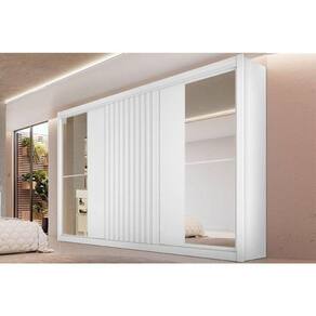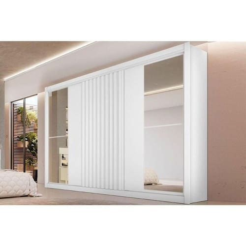 O Guarda Roupa Vitoria é a união de qualidade, tamanho e beleza. Este Roupeiro é perfeito para seu espaço. Possui excelente espaço interno com 6 gavetas com corrediças telescópicas que permite maior aproveitamento interno e duas gavetas que possuem chaves para armazenar com segurança seus pertences. Possui compartimento para malas e roupas de cama. Prateleiras fixas e prateleiras removíveis para poder acomodar roupas longas. Possui também compartimento para calçados. Para maior durabilidade possui costas grossas parafusadas. Os trilhos inferior e superior são em alumínio. A porta central tem o designer ripado. As portas laterais de madeira possuem puxador em perfil de alumínio. Possui roldanas com molas, nesse sistema a porta não sai do trilho. Características: 3 Portas 6 Gavetas mdf Divisão ele e ela Duas gavetas internas com chave Gaveta com corrediças telescópicas Roldanas com regulagens Trilho superior e inferior em alumínio Modulado para roupas longas Prateleiras removiveis Cabideiro e calceiros espaçosos em alumínio Portas , opção de escolher a tonalidade da porta no ato da montagemAltura: 235 cm Largura: 275 cm Profundidade: 63,5 cm Peso: 255,00 kgGarantia do fornecedor de 3 meses