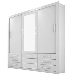 Ele possui 9 gavetas e 3 portas de correr, que facilitam na hora de armazenar e manter todas as roupas bem organizadas. Aproveite.