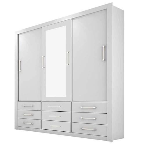 Guarda Roupa Casal 3 Portas 9 Gavetas com Espelho Anjos Carioca Móveis
