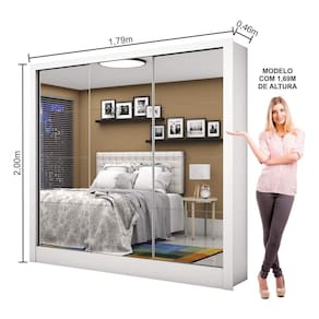 Guarda Roupa Santiago Premium com 3 portas de correr, 200cmx179cmx46cm. Possui 3 gavetas, 6 prateleiras e 1 grande cabideiros em alumínio. Além de ser um produto lindo e funcional, proporciona ao cliente praticidade ao acomodar todas as roupas de maneira organizada. As roldanas em aço e o trilho em alumínio tem a função de potencializar o deslizar das portas.