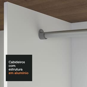 Ótimo espaço interno e organização: Ideal para um casal, possui diversos nichos e duas gavetas que facilitam a organização de roupas, calçados e acessórios. O tubo cabideiro metálico é resistente e perfeito para pendurar roupas longas.