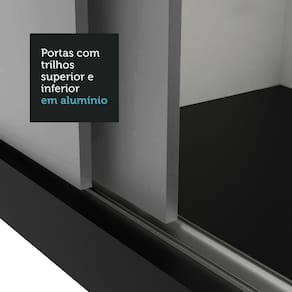 Características principais: Conta com portas de correr que deslizam suavemente, graças aos trilhos superiores e inferiores em alumínio. Isso garante um funcionamento tranquilo e sem esforço. Uma das portas conta com espelhos, que são úteis no dia a dia e deixam o móvel ainda mais elegante.