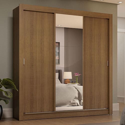 Características principais: Conta com portas de correr que deslizam suavemente, graças aos trilhos superiores e inferiores em alumínio. Isso garante um funcionamento tranquilo e sem esforço. Uma das portas conta com espelhos, que são úteis no dia a dia e deixam o móvel ainda mais elegante.