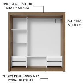 Ótimo espaço interno e organização: Ideal para um casal, possui diversos nichos e quatro gavetas que facilitam a organização de roupas, calçados e acessórios. O tubo cabideiro metálico é resistente e perfeito para pendurar roupas longas.
