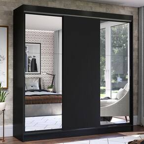 - Três (3) portas de correr com sistema anti-descarrilhamento, sendo duas delas com espelhos
