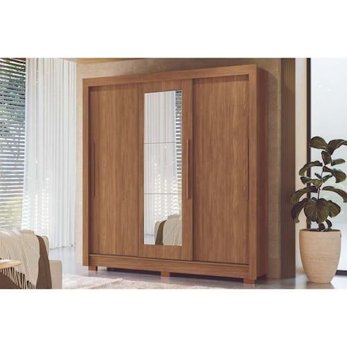 Material dos Cabideiros - Cabideira Metálico Tipo de Porta do Guarda-Roupa - Portas de Correr Diferenciais das Portas - Fechamento c/ Freio Anti-Impacto - Porta c/ Espelho Quantidade de Portas - 3 Portas de Correr Quantidade de Portas com Espelho - 1 Porta com Espelho Tipo de Espelho - Espelho Externo Quantidade de Espelhos - 3 Espelhos Tipo de Corrediça - c/ Corrediças Telescópicas Quantidade de Gavetas - 2 Gavetas Material de Estrutura Fundo Gaveta - Em HDF Tipo dos Pés - Pés Opcionais