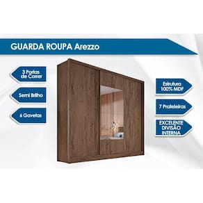 Guarda Roupa Casal 3 Portas de Correr (1 c/ Espelho) e 6 Gavetas Arezzo/Medelim Cumaru/Fendi - Novo Horizonte
