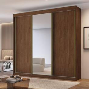 Ideal para quem busca praticidade e estilo, nosso guarda roupa 100% MDF possui 3 portas de correr, sendo 1 espelhada, perfeita para ampliar espaço e facilitar seu dia a dia. Com acabamento em pintura UV e verniz ultra resistente, oferece durabilidade e fácil limpeza. Inclui 8 gavetas espaçosas com corrediças telescópicas para abertura suave, além de puxadores e perfis em alumínio bronze, que garantem um toque sofisticado. O sistema anti-descarrilhamento e folga zero evita desalinhamentos, enquanto o amortecimento das portas reduz impactos e ruídos. Com fundo inteiriço para maior resistência, ele é perfeit0 para quem deseja organização sem abrir mão do design.