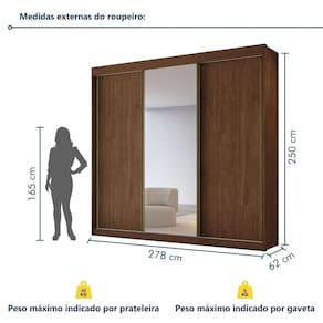 Pode usar como guarda-roupa com porta de correr infantil? Claro. Possui espaço de sobra para guardar roupas e brinquedos. Acabamento da Prateleira: Pintura Escala de Brilho da Prateleira: Semi-Fosco Acabamento da Gaveta: Pintura Escala de Brilho da Gaveta: Semi-Fosco Possui Organizador de Gaveta: Não Acabamento da Porta: Pintura UV Escala de Brilho da Porta: Semi-Fosco Altura do Espelho: 225,6 cm Ambiente Principal: Quarto codigo_ean: 7900288132949 Complexidade da Montagem: Média: pode ser montado por mais de uma pessoa e/ou necessite de maior conhecimento para montagem Cor: Cacau Cor do Produto: Cacau Cor Interna: Cacau Escala de Brilho: Semi-Fosco Espessura da Estrutura (mm): 2,5 mm Espessura das Portas (mm): 1,5 mm Espessura das Prateleiras (mm): 1,5 mm Espessura do Espelho: 3 mm Espessura do Fundo (mm): 1,5 mm Espessura do Fundo das Gavetas (mm): 1,5 mm Formato do Espelho: Retangular Gaveta com Chave: Não Guarda-Roupa Suporta Até (kg): 130 kg Itens Inclusos: 1 Guarda-Roupa, Kit Ferragens e Manual de montagem. Largura do Espelho: 89 cm Linha ou Coleção: Chicago Manual de Montagem e Instalação: https://product-hub-prd.madeiramadeira.com.br/977478154/documents/15dd6875-6187-4a5b-8424-43f5de8f4e7f2876302554117455136826144.pdf Marca: Conquista Móveis Material da Gaveta: MDF Material da Porta: MDF Material da Prateleira: MDF Material Principal: MDF modular: Não Montagem Flex: Não Necessita Montagem: Sim Nicho com Cabideiro: Não Origem do Produto: Nacional Peso: 291,23 kg Peso Máximo por Gaveta: 5 kg Peso Máximo por Prateleira: 10 kg Porta Janelada: Não Possui Calceiros: Não Possui Capelinha: Não Possui Espaço para Vestidos Longos: Sim Possui Espelho: Sim Possui Espelho Interno: Não Possui iluminação: Não Possui Painel de TV: Não Possui Penteadeira: Não Possui Pés: Não Possui Portas: Sim Possui Prateleiras: Sim Produto Montado: Sim Quantidade de Cabideiros: 03 Cabideiros Quantidade de Espelho: 01 Quantidade de Gavetas: 08 Gavetas Quantidade de Portas com Espelhos: 1 Porta com Espelho Quantidade de Prateleiras: 09 Prateleiras Recomendações de Uso, Manutenção e Limpeza: Na limpeza não utilizar produtos químicos e abrasivos usar apenas um pano umedecido para garantir a maior durabilidade do móvel. Sistema de Montagem: Parafusos e Cavilhas Suporta Até (kg): 130 kg Tipo de Corrediça da Gaveta: Metálica Telescópica Tipo de Dobradiça/Corrediça da Porta: Telescópica Tipo de Fixação do Espelho: Fita Dupla Face Tipo de Gaveta: Interna Tipo de Guarda-Roupa: Casal Tipo de Puxador da Gaveta: Externo Tipo de Puxador da Porta: Não Possui
