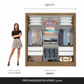 O Guarda Roupa 3 Portas de Correr Casal Aghata combinação perfeita entre praticidade e estilo, oferecendo um design moderno e funcional que economiza espaço e adiciona um toque elegante ao ambiente.Detalhes Técnicos- Montado: A: 200cm | L: 190cm | P: 52cm- 8 Divisões internas- 5 Prateleiras- 4 Gavetas- 3 Portas de correr- 4 Puxadores- 3 Cabideiros- Gavetas e Prateleiras suportam até 5kgMateriais- MDP 12mm e 15mm- Dobradiças e Corrediças metálicas- Puxadores em plástico- Cabideiros em alumínio- Revestimento: FF Fosco (Finish Foil)- Tonalidade: BorealConteúdo da Embalagem- 01 Guarda Roupa- Manual de Montagem- Acessórios para MontagemObservações Importantes- As imagens ambientadas são meramente ilustrativas e podem apresentar itens que não incorporam o produto;- Todos os nossos produtos são novos, acompanham documento fiscal e possuem garantia de 3 meses, essa garantia cobre somente defeitos de fabricação;- A entrega só será efetuada no endereço do CEP, caso o endereço seja diferente do CEP informado no pedido, a entrega terá cobrança adicional e o comprador arcará com as despesas;- Não realizamos entregas para zonas rurais, via caminhos fluviais e distritos, por isso não aceitamos CEP GERAL da região;- Não é possível realizar o agendamento de entrega do produto, é necessário que acompanhe o rastreio de seu pedido para saber a previsão de entrega;- As entregas somente serão realizadas para um responsável maior de idade (+18);- Enviamos para diversos estados, sendo assim nossas entregas são realizadas por transportadoras parceiras de nossa empresa. Confira as dimensões antes da compra e certifique-se de que o produto passará por elevadores, portas e corredores já que nossa entrega não inclui a subida de lances de escada, transporte por elevador e o lançamento de produtos, em caso de condomínios residenciais a entrega é feita somente até a portaria. Todas as entregas são realizadas em dias e horários comerciais;- Ao receber os seus produtos observe se a embalagem se encontra em perfeitas condições. Se você adquiriu algum móvel, confira atentamente a quantidade de volumes e o aspecto físico das embalagens. Confira também se a cor do móvel está de acordo com o seu pedido;- O prazo de cancelamento por arrependimento é de até 7 dias corridos a contar da data de recebimento;- Os produtos e assistências são enviados DESMONTADOS, MONTAGENS E DESMONTAGENS recomendamos sempre a contratação de um montador profissional e é válido lembrar que o custo desses serviços é por conta do comprador;- Objetos decorativos que aparecem na foto não acompanham o produto;- Evitar a exposição direta à luz solar e à umidade;- Para limpeza, limpar com pano macio e seco, não utilizar qualquer outro tipo de produtos químicos;- As cores do produto podem variar de acordo com o monitor, a iluminação do ambiente ou sua percepção visual.