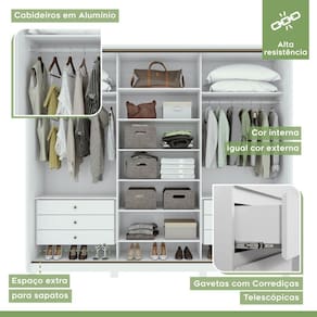 O móvel ideal para completar seu dormitório está aqui. Com este lindo Guarda Roupa Spazio, você saberá exatamente onde encontrar suas roupas. Feito com MDF, ele possui corrediças telescópica e o visual perfeito para fazer parte do seu lar. Incrível, né? Aproveite! Acabamento da Prateleira: Pintura Escala de Brilho da Prateleira: Fosco Possui Cabideiros: 02 Acabamento da Gaveta: Pintura Escala de Brilho da Gaveta: Fosco Material do Puxador da Gaveta: Alumínio Possui Organizador de Gaveta: Sim Acabamento da Porta: Pintura Escala de Brilho da Porta: Brilhante Material do Puxador da Porta: Alumínio Acabamento dos Pés: Pintura Acompanha Cama Auxiliar: Acompanha Colchão: Altura da Cama: Altura do Espelho: Altura do Espelho 01: Altura do Espelho 02: Altura do Espelho 03: Altura do Espelho 04: Altura do Espelho 05: Altura do Espelho 06: Altura dos Pés: 7 Ambiente Principal: Quarto Cama Auxiliar Acompanha Colchão: Cama Auxiliar Suporta Até (kg): Cama Suporta Até (kg): Complexidade da Montagem: Alta: deve ser montado por um montador especializado Cor: Branco Cor do Produto: Branco Cor Flex: Cor Interna: Escala de Brilho: Fosco Espessura do Espelho: Fita Integrada: Formato do Espelho: Gaveta com Chave: Não Guarda-Roupa Suporta Até (kg): 100 Informações Complementares: Itens Inclusos: 1 Guarda Roupa, Kit Ferragens e Manual de Montagem. Largura da Cama: Largura do Espelho: Largura do Espelho 01: Largura do Espelho 02: Largura do Espelho 03: Largura do Espelho 04: Largura do Espelho 05: Largura do Espelho 06: Linha ou Coleção: Spazio Manual de Especificação Técnica: Manual de Montagem e Instalação: https://cdn2.madeiramadeira.com.br/atributo/m-veis-lopas/427408-41926-gr-spazio-3-pts-correto.pdf Material da Gaveta: MDF Material da Porta: MDF Material da Prateleira: MDF Material dos Pés: PVC Material Principal: MDF Montagem Flex: Necessita Montagem: Sim Origem do Produto: Nacional Peso: 265.57 Peso Máximo por Gaveta: 10 Peso Máximo por Prateleira: 5 Possui Calceiros: Não Possui Espaço para Vestidos Longos: Possui Espelho: Não Possui Espelho Interno: Possui Ganchos: Possui iluminação: Possui Painel de TV: Possui Pés: Não Possui Portas: 03 Possui Prateleiras: 10 Possui Sapateira: Profundida de Cama: Quantidade de Espelho: Recomendações de Uso, Manutenção e Limpeza: Limpar somente com pano macio e seco, não colocar diretamente em incidência da luz solar, não colocar em lugar úmido. Sapatas Niveladoras: Não Sistema de Montagem: Parafusos e Minifix Tamanho do Colchão Indicado (L x C): Tamanho do Colchão Indicado Cama Auxiliar: Tipo de Corrediça da Gaveta: Metálica Telescópica Tipo de Dobradiça/Corrediça da Porta: Alumínio Tipo de Estrado: Tipo de Fixação do Espelho: Tipo de Gaveta: Interna Tipo de Guarda-Roupa: Casal Tipo de Madeira Maciça: Tipo de Madeira Maciça da Gaveta: Tipo de Madeira Maciça da Porta: Tipo de Madeira Maciça da Prateleira: Tipo de Madeira Maciça do Puxador da Gaveta: Tipo de Madeira Maciça do Puxador da Porta: Tipo de Madeira Maciça dos Pés: Tipo de Puxador da Gaveta: Externo Tipo de Puxador da Porta: Externo