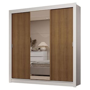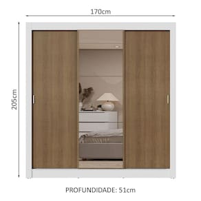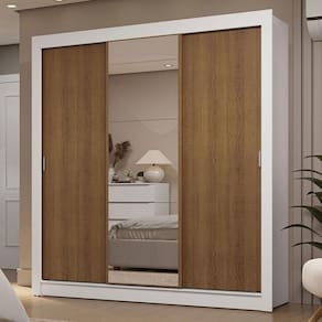 Características principais: Conta com portas de correr que deslizam suavemente, graças aos trilhos superiores e inferiores em alumínio. Isso garante um funcionamento tranquilo e sem esforço. Uma das portas conta com espelhos, que são úteis no dia a dia e deixam o móvel ainda mais elegante.