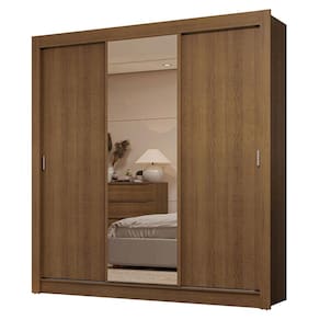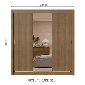 Características principais: Conta com portas de correr que deslizam suavemente, graças aos trilhos superiores e inferiores em alumínio. Isso garante um funcionamento tranquilo e sem esforço. Uma das portas conta com espelhos, que são úteis no dia a dia e deixam o móvel ainda mais elegante.