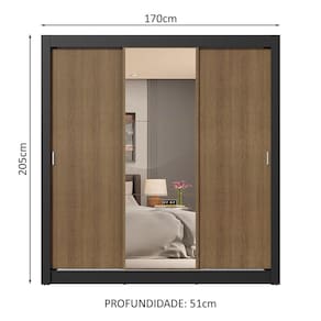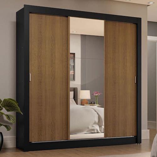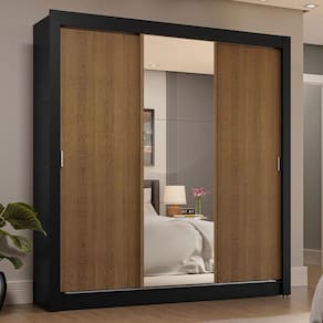 Características principais: Conta com portas de correr que deslizam suavemente, graças aos trilhos superiores e inferiores em alumínio. Isso garante um funcionamento tranquilo e sem esforço. Uma das portas conta com espelhos, que são úteis no dia a dia e deixam o móvel ainda mais elegante.