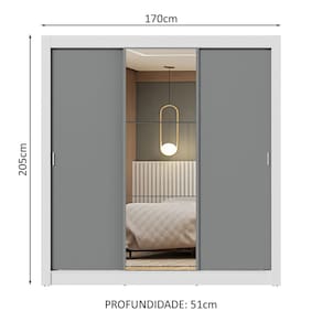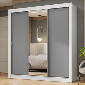 Características principais: Equipado com portas de correr que deslizam suavemente, graças aos trilhos superiores e inferiores em alumínio. Isso garante um funcionamento tranquilo e sem esforço. Uma das portas conta com espelhos, que são úteis no dia a dia e deixam o móvel ainda mais elegante.