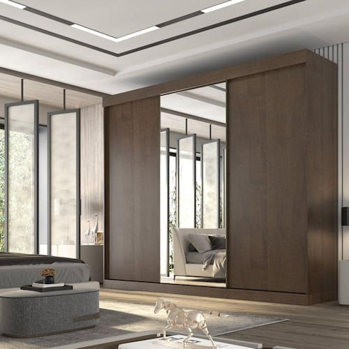 O Guarda-Roupa Garibaldi 100% MDF Valverde Móveis, possui acabamento texturizado, moderno, encontrado apenas nas melhores fábricas de Minas. Este produto possui um contexto de conforto, qualidade e satisfação que atraem até os clientes mais exigentes é um móvel conceitual e imponente, ele impressiona por sua grandiosidade, pelos espaços bem distribuídos e os detalhes pensados para atender as mais variadas necessidades do usuário, são eles: puxadores em mdf alongados com design moderno e funcional, cabideiros e calceiro metálicos, nichos central para acessórios, sapateiras e espaço para longos, gavetas com corrediças telescópicas, para acomodar os seus pertences e proporcionar a melhor organização do espaço. Acabamento da Prateleira: Pintura Texturizada UV Escala de Brilho da Prateleira: Fosco Possui Cabideiros: 04 Acabamento da Gaveta: Pintura Texturizada UV Possui Organizador de Gaveta: Não Acabamento da Porta: Pintura Texturizada UV Escala de Brilho da Porta: Fosco Altura do Espelho: 218 Ambiente Principal: Quarto Complexidade da Montagem: Alta: deve ser montado por um montador especializado Cor: New Canion/Off White Cor do Produto: New Canion/Off White Cor Flex: Off-White Cor Interna: New Canion Escala de Brilho: Fosco Espessura do Espelho: 3 Formato do Espelho: Retangular Gaveta com Chave: Não Itens Inclusos: 1 Guarda-Roupa, Manual de Montagem, Kit Ferragens Largura do Espelho: 96 Manual de Montagem e Instalação: https://cdn2.madeiramadeira.com.br/atributo/valverde/1336851-7899224223295-1.pdf Material da Gaveta: MDF Material da Porta: MDF Material da Prateleira: MDF Material Principal: MDF Montagem Flex: Sim, o cliente tem a opção das portas serem flex, de uma lado da cor do predominante do produto e do outro é Off-White. Necessita Montagem: Sim Origem do Produto: Nacional Peso: 233.6 Peso Máximo por Gaveta: 5 Peso Máximo por Prateleira: 3 Possui Calceiros: Não Possui Espelho: Sim Possui Pés: Não Possui Portas: 03 Possui Prateleiras: 07 Quantidade de Espelho: 01 Recomendações de Uso, Manutenção e Limpeza: Limpeza com pano macio e levemente umedecido. Não utilizar solventes a base e de inflamáveis. Não utilizar produtos abrasivos. Sistema de Montagem: Parafusos, Cavilhas Tipo de Corrediça da Gaveta: Metálica Telescópica Tipo de Dobradiça/Corrediça da Porta: Alumínio Tipo de Fixação do Espelho: Silicone Tipo de Gaveta: Interna Tipo de Guarda-Roupa: Casal Tipo de Puxador da Gaveta: Não Possui Tipo de Puxador da Porta: Embutido